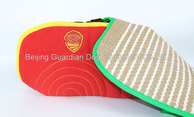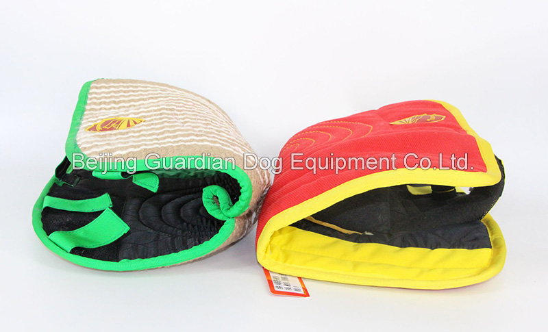 The sleeve is easy to carry. The hardness of the bite area can be adjusted according to the dog's bite strength. The set includes a liner and two covers. The jute cover is for dogs over 10 months, the cloth one for practicing prolonged bites.